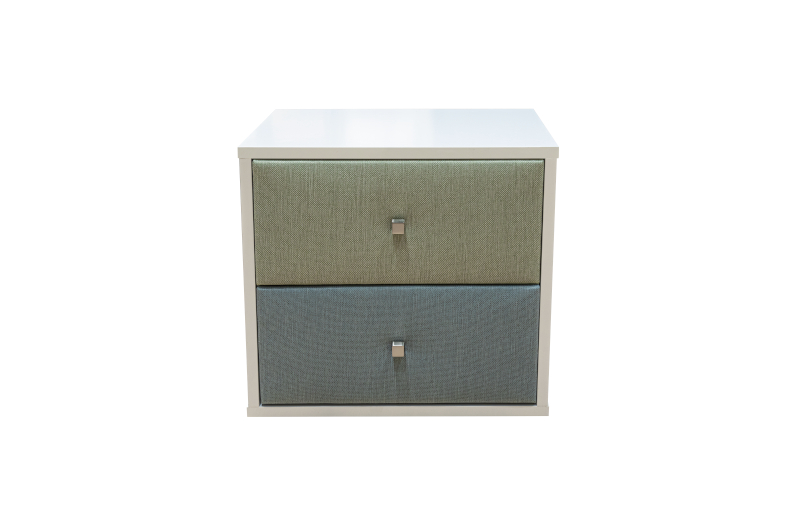 The STYLISH bedside table combines contemporary aesthetics with practical functionality, making it an ideal choice for modern bedrooms. Its clean, geometric form and minimal frame create a balanced and timeless foundation, while the fabric drawer fronts add texture, color, and a sense of warmth to the space.