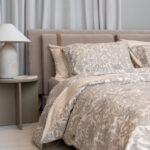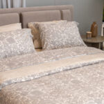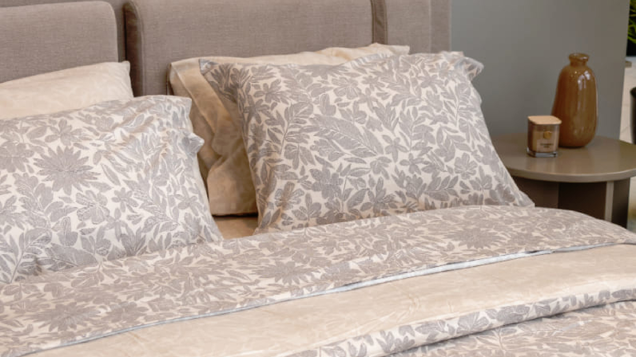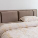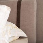 Οι προσεκτικά επιλεγμένοι συνδυασμοί υφασμάτων και αποχρώσεων ενισχύουν τον χαρακτήρα του κρεβατιού, αναδεικνύοντας τη γεωμετρία του με ισορροπία.